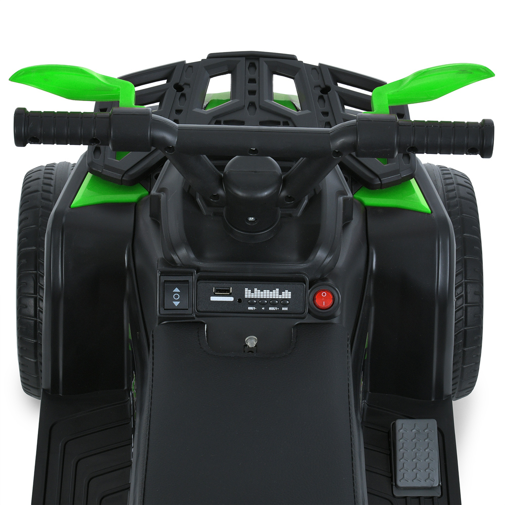 Для більшого задоволення квадроцикл має світлові ефекти (передні фари) та музичну панель MP3 з USB, SD-карткою та Bluetooth. Корпус виготовлений з протиударного пластику, що забезпечує надійність і довговічність конструкції.