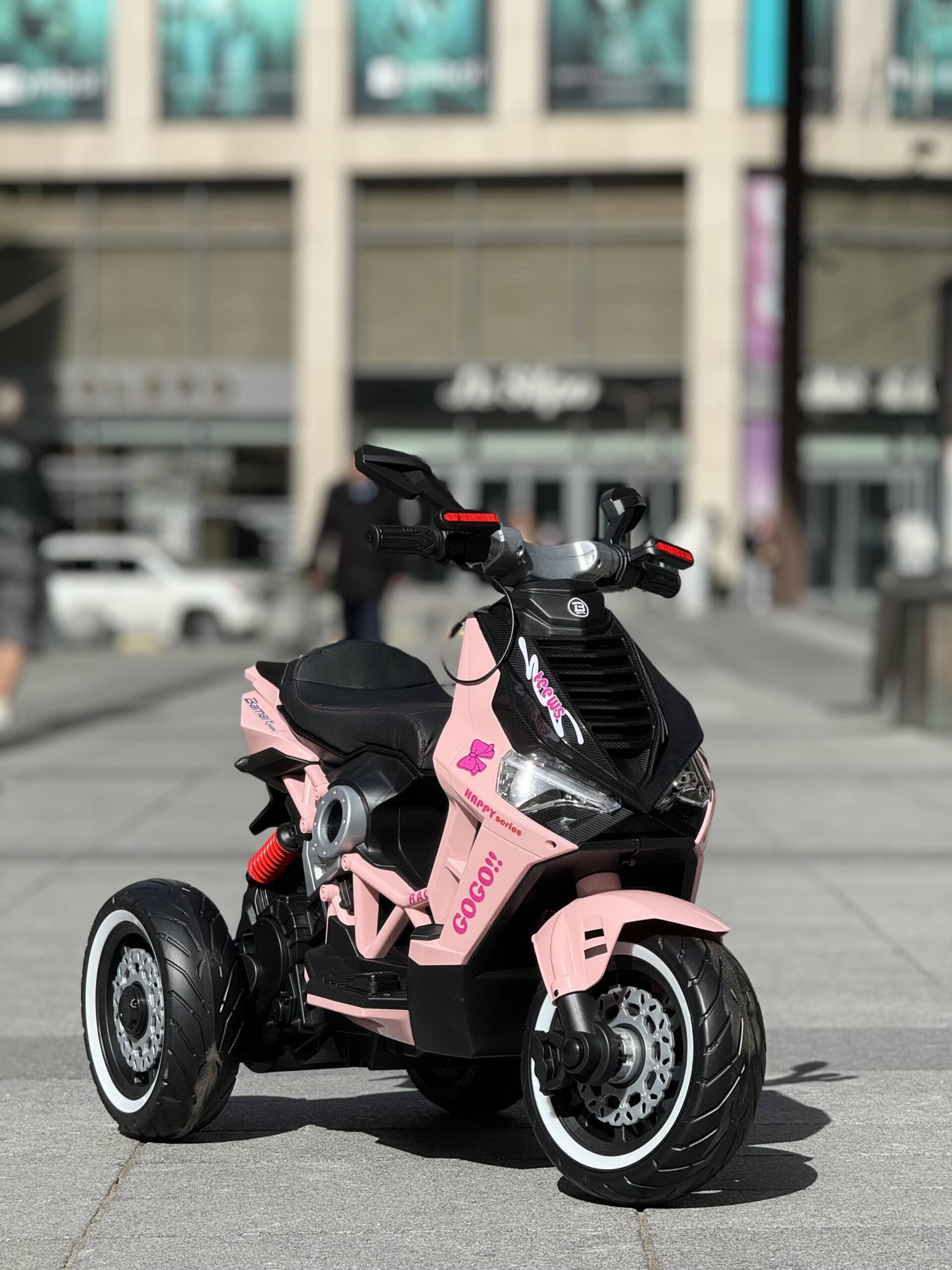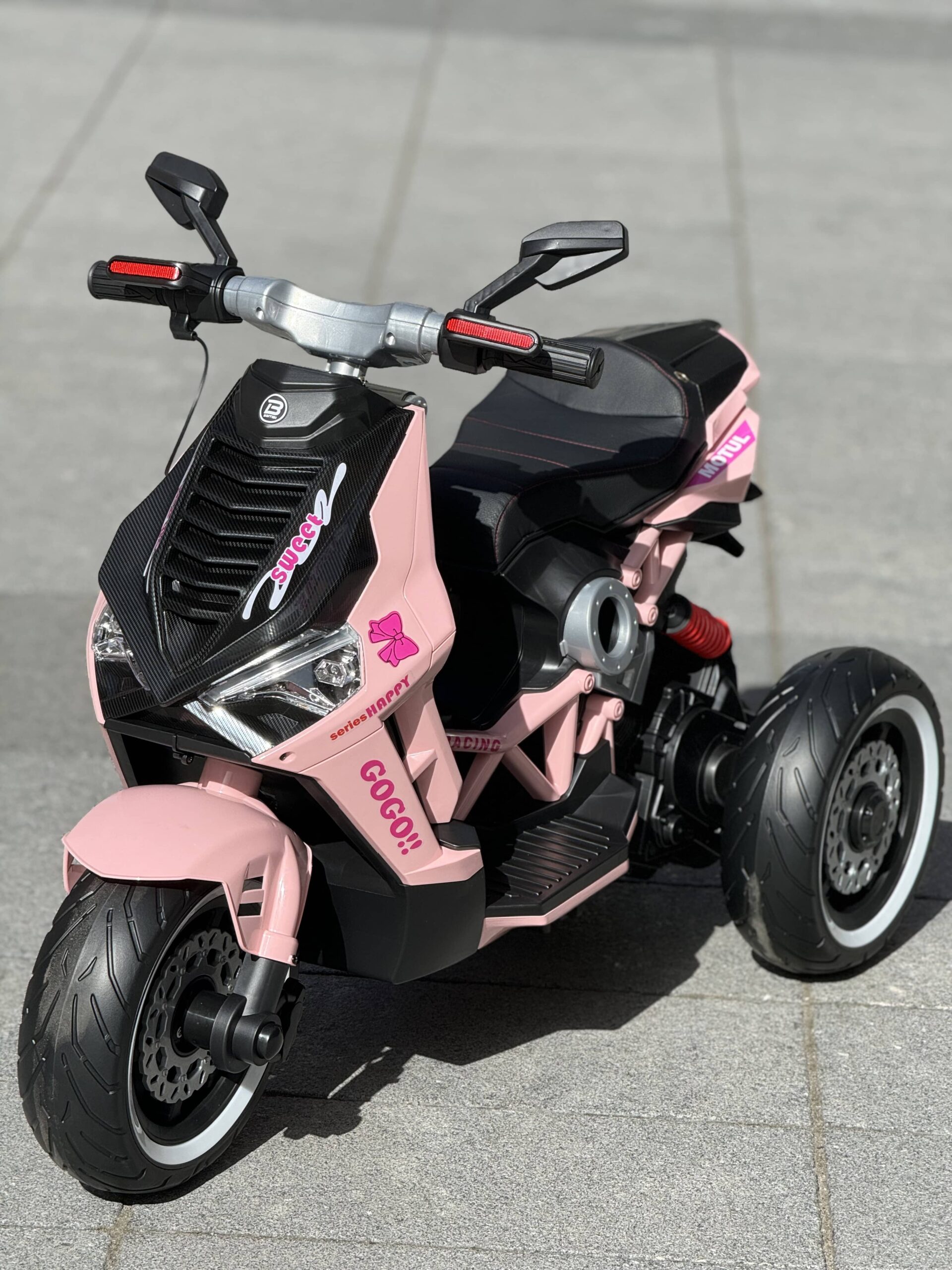 - Стильний дизайн: Натхненний спортивними мотоциклами та потужними скутерами, але особливістю цієї моделі є приємні та ніжні кольори з переважанням рожевих віддінків, адже дівчата також полюбляють швидкість