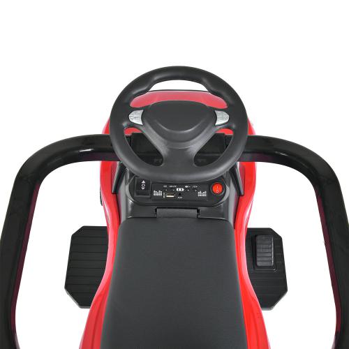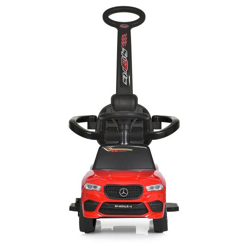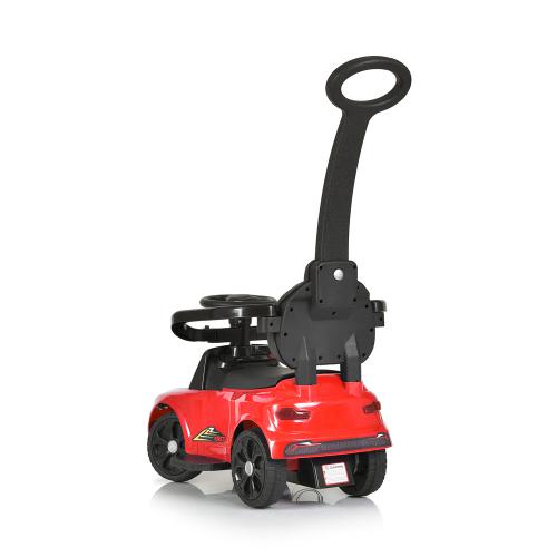 Наводиться в рух як самою дитиною шляхом натискання тумблера і педалі (в режимі електромобіля), так і відштовхуючись ніжками від