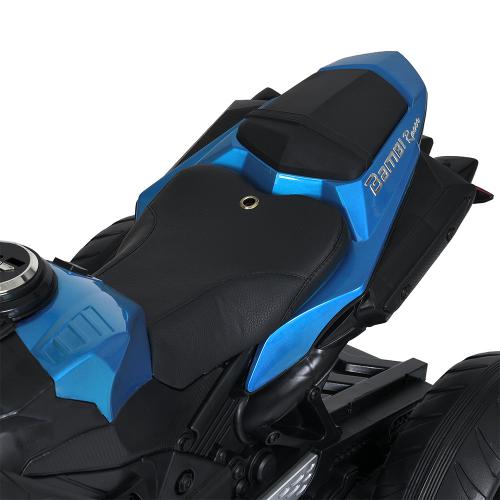Цей мотоцикл не лише швидкий, але й комфортний. М’яке сидіння з еко-шкіри додає зручності навіть при тривалих поїздках. Високий рівень безпеки також забезпечений — завдяки плавному старту та можливості руху вперед і назад за допомогою спеціального тумблера. Безпечне гальмування здійснюється за допомогою педалі, що дає дітям змогу самостійно контролювати свою поїздку.