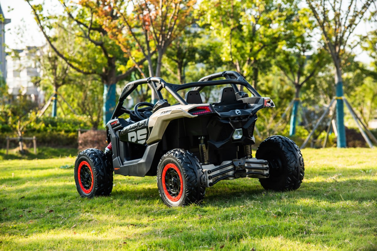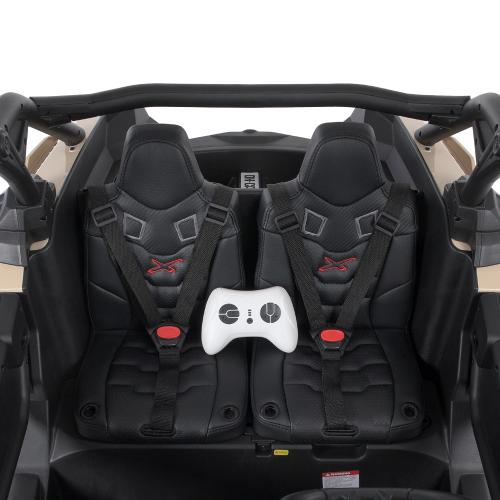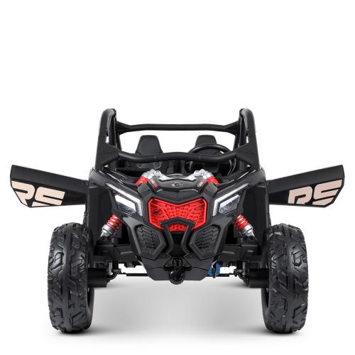 Баггі з пультом управління виконаний в оригінальному дизайні та обладнаний одним 2-х місним шкіряним сидінням. Електромобіль оснащений двома потужними двигунами та акумулятором 24V/7Ah. Передбачена можливість підключення Bluetooth, а також є MP3 і USB, TF. Світло передніх і задніх фар додасть їзді різноманітності. Пульт дистанційного керування з можливістю перемикання швидкостей входить до комплекту.
