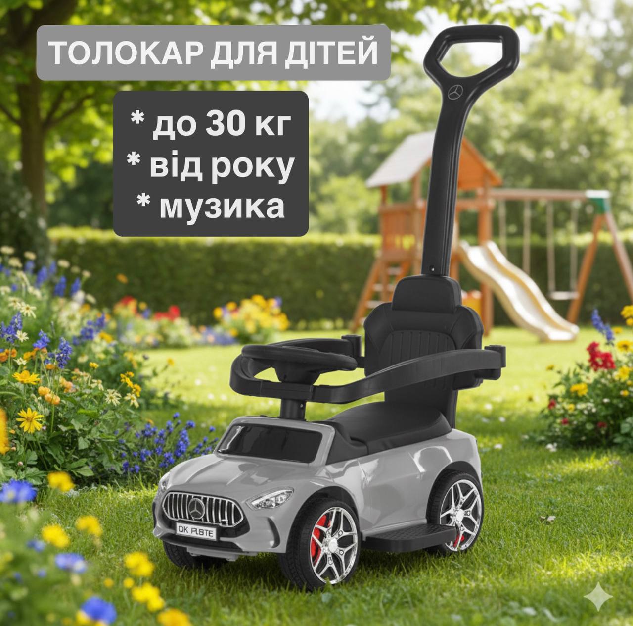 Дитячий толокар Bambi Mercedes з батьківською ручкою, сірий