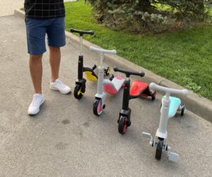 - Количество колес. Подбираются с учетом возраста ребенка и навыков вождения самоката;