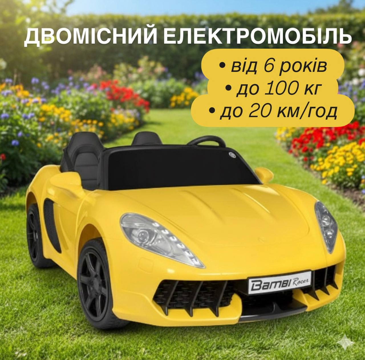 Детский двухместный электромобиль Porsche Cayman до 100 кг, желтый