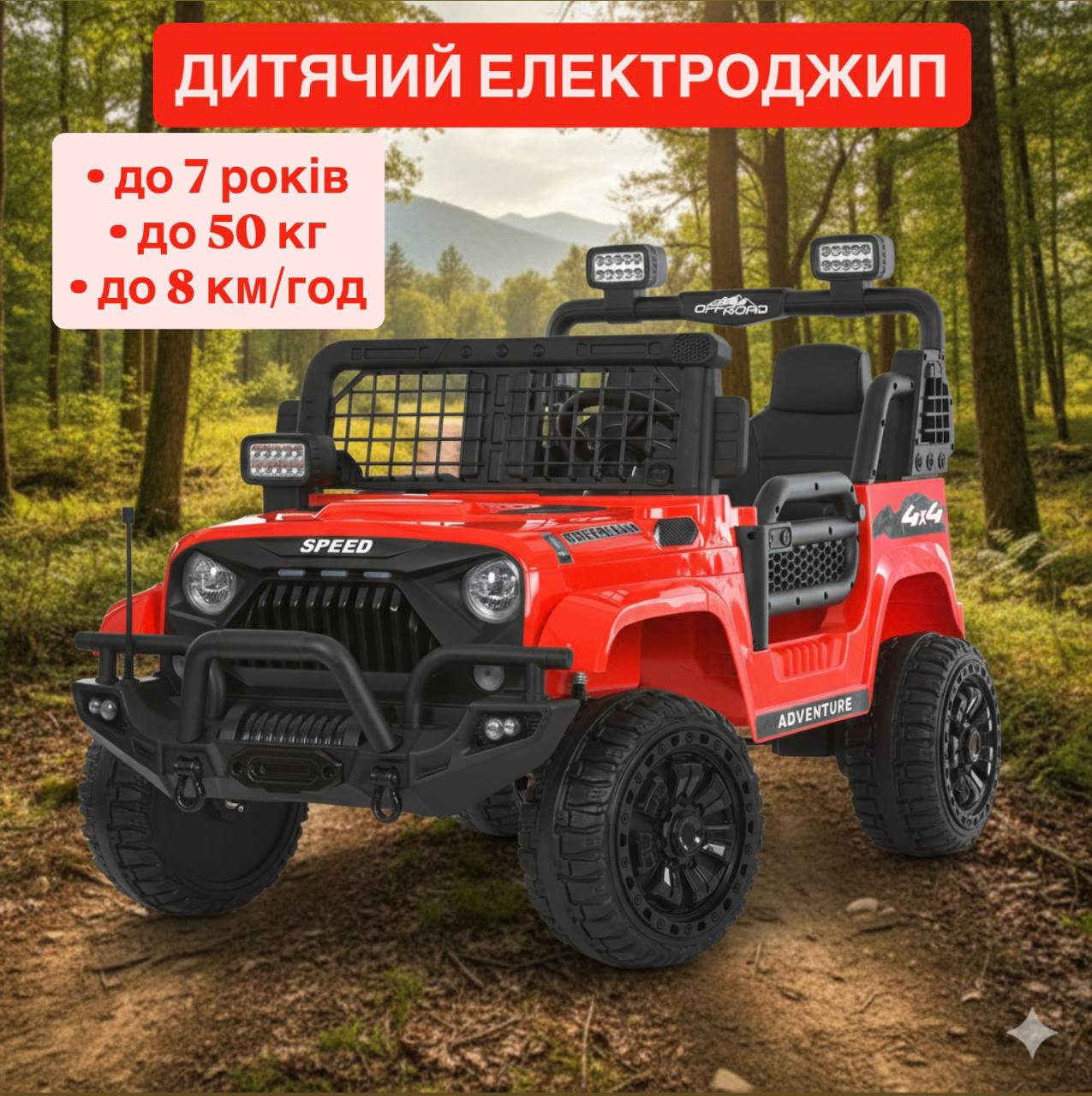 Дитячий джип Bambi двомісний з додатковими ліхтарями, червоний