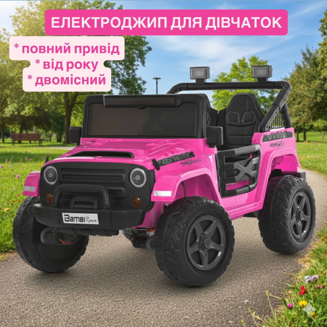 Дитячий джип Bambi двомісний з додатковими ліхтарями, червоний