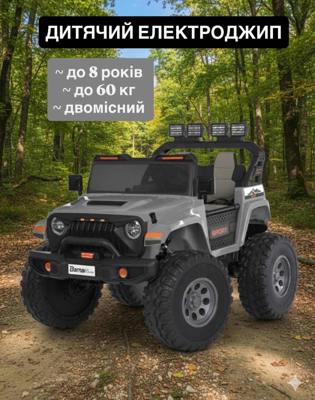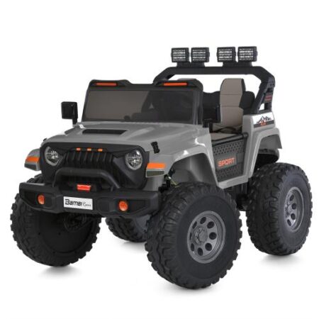 Дитячий електромобіль Bambi Racer Jeep з навісними фонарями та великими колесами на пульті керування, сірий