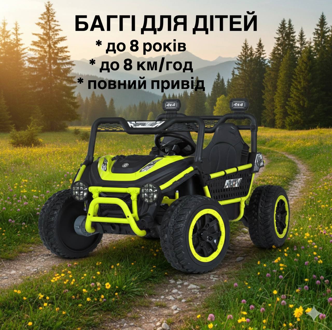 Детский электромобиль Bambi Buggi двухместная с навесными фарами, зеленая