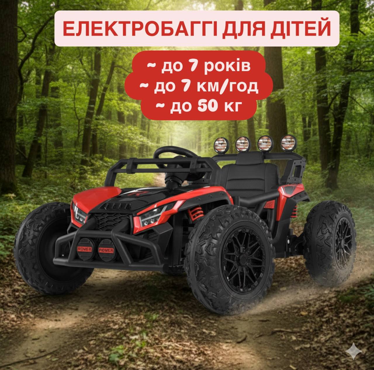 Детский электромобиль Buggy Power Sport, полноприводный, красный, красный