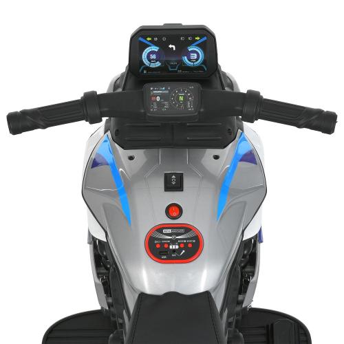 Детский электромотоцикл Bambi BMW R1200 RT (MP3) с дополнительными колесиками, резиновыми колесами и ручкой для транспортировки, синий