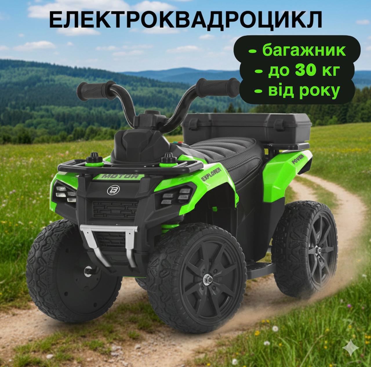 Дитячий квадроцикл Bambi з багажником та EVA колесами, зелений