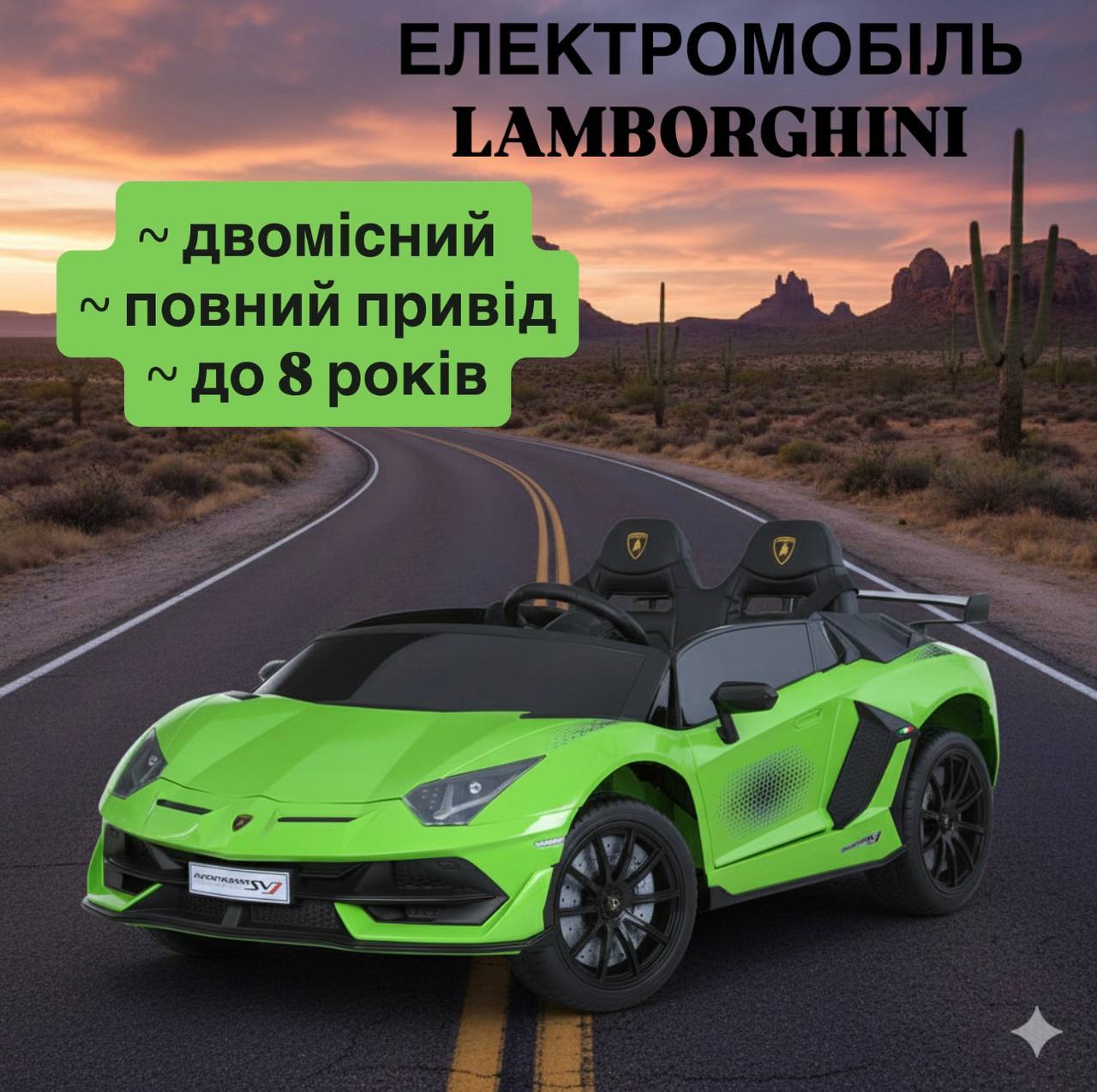 Дитячий легковий електромобіль LAMBORGINI AVENTADOR SVJ, повний привід, зелений