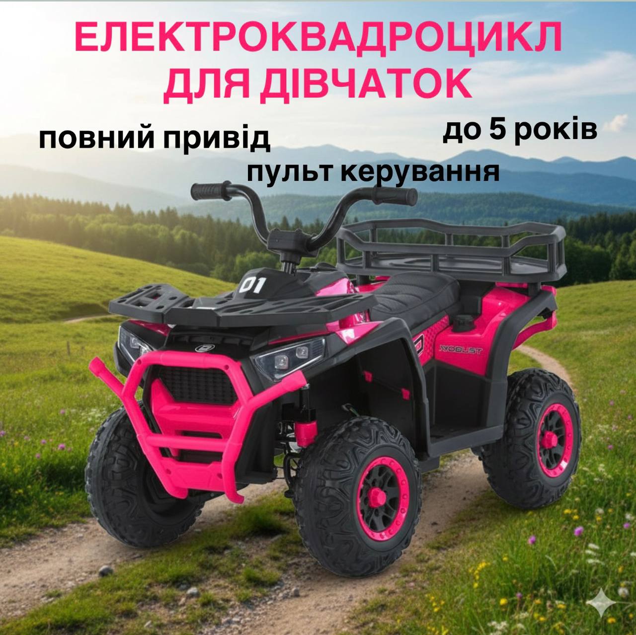 Дитячий повнопривідний електроквадроцикл Bamby XROBUST 01, рожевий(MP3)