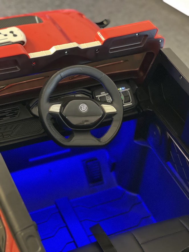 - Приводится в движение как самим ребенком путем нажатия кнопки "Старт" и педали, приложения или с помощью пульта дистанционного управления 2,4G.