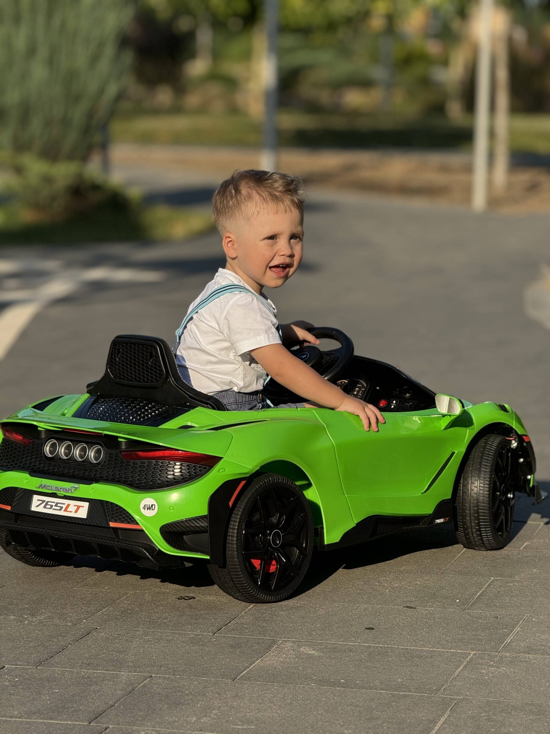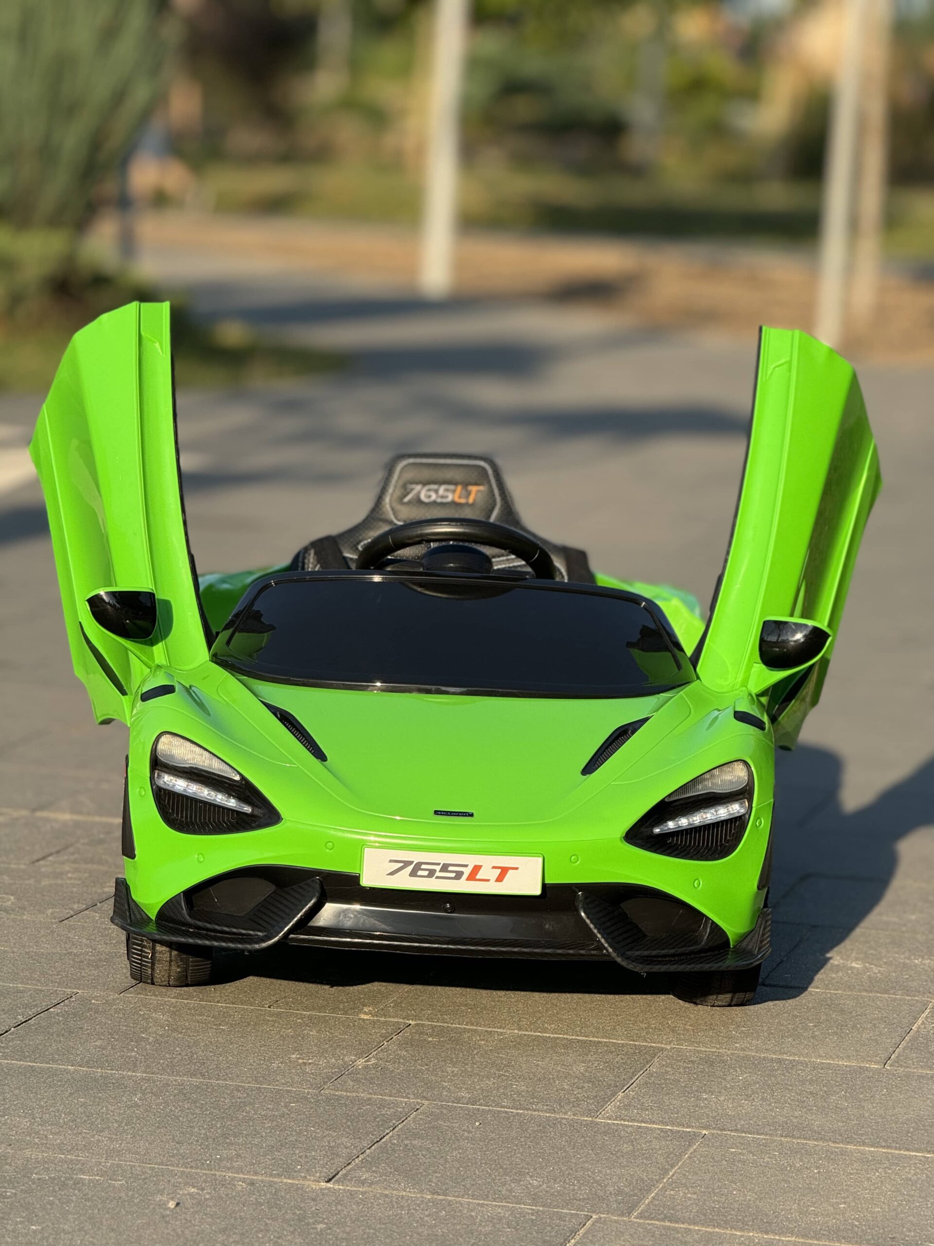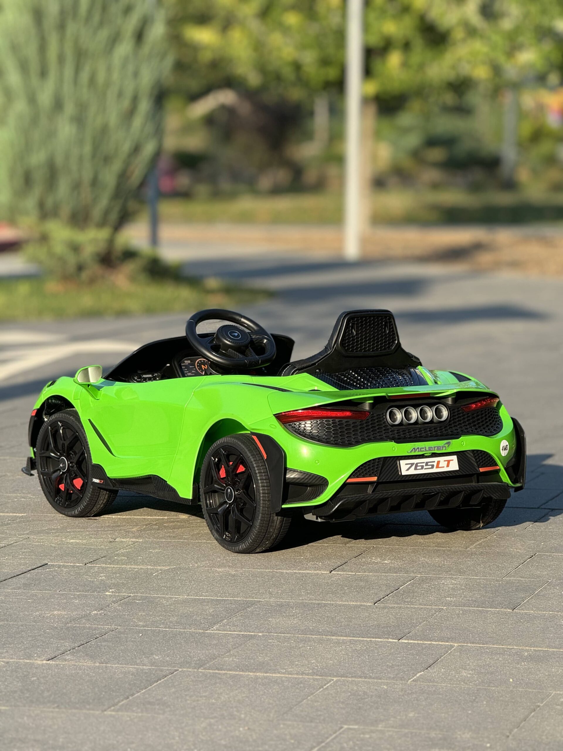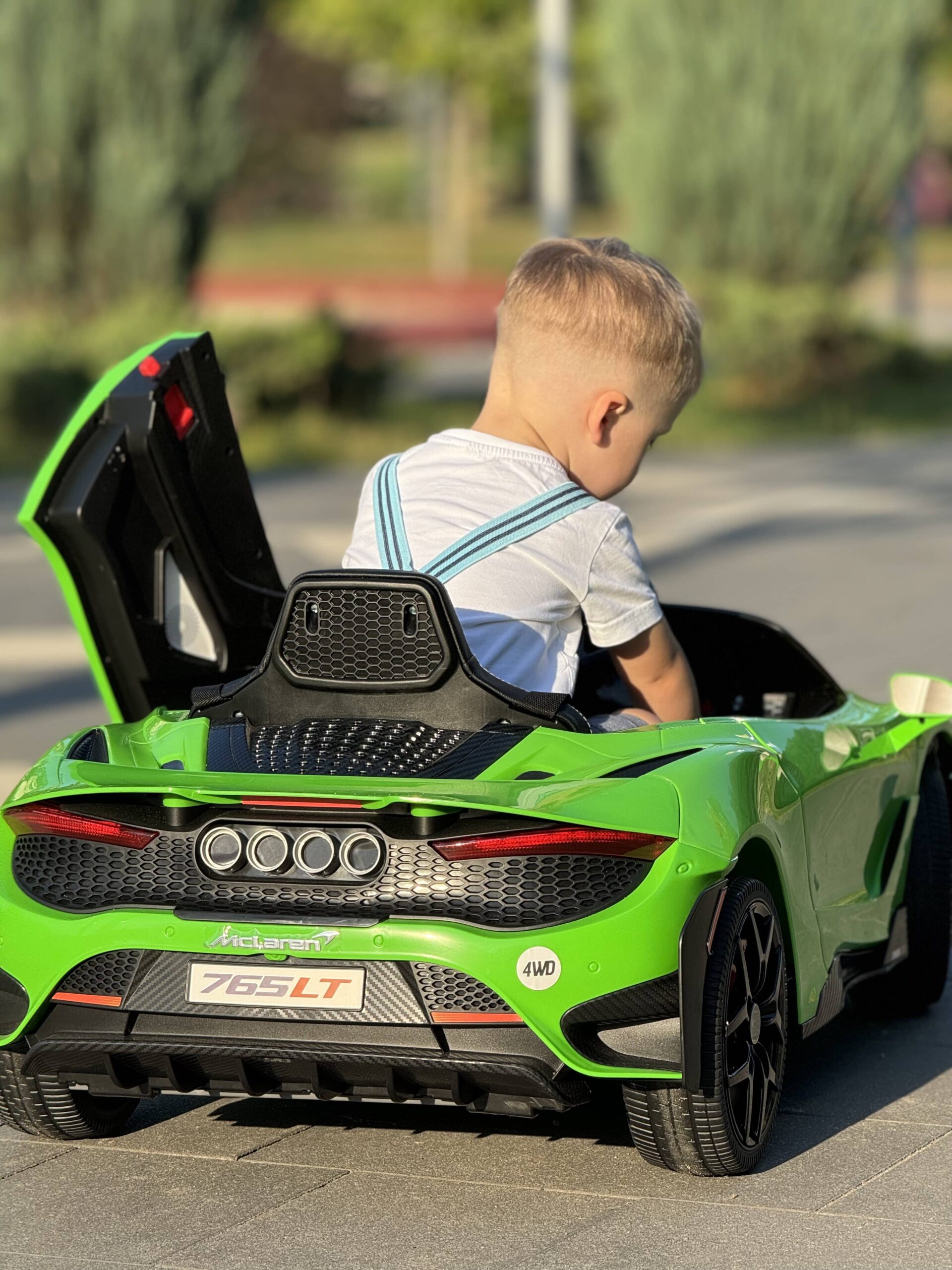 Детский полноприводный электромобиль McLaren 765LT с ручкой для транспортировки, зеленый