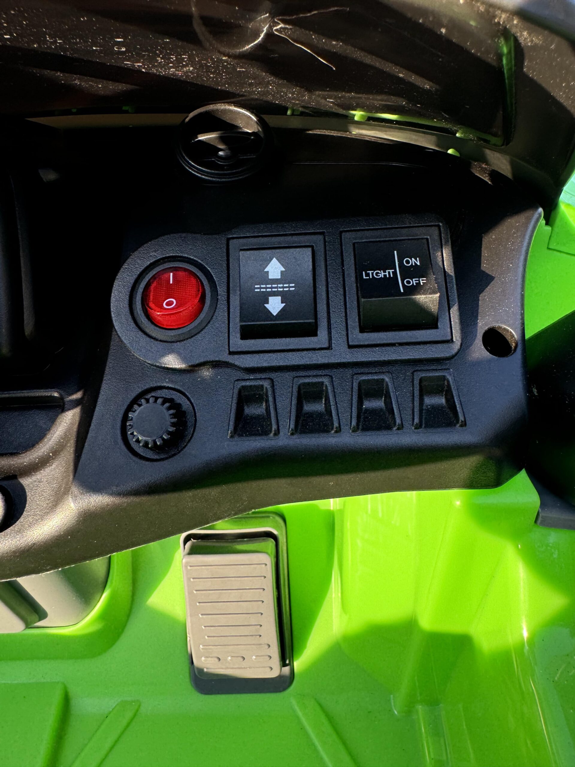 - Световые и звуковые эффекты, светящиеся фары: передні та задні, підсвітка панелі, кнопка вмик/вимик. світла, музика, звук при старті, регулятор гучності