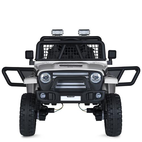 Міцний пластик, з якого виготовлений корпус, гарантує довговічність і стійкість до активного використання. Розміри джипа — довжина 105 см, ширина по дзеркалах/колесах 63 см, висота 70 см, що забезпечує оптимальний комфорт і безпеку для маленьких водіїв.