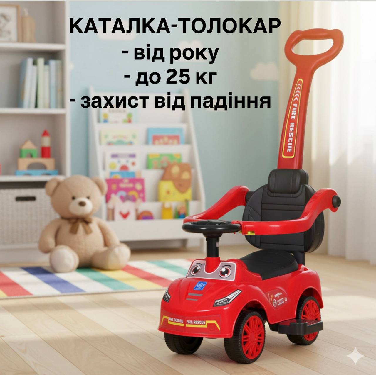 - Розміри толокара: довжина (машини/з рід.ручкою) – 58см/75см, ширина(по колесах/підставка для ніг) – 24см/42см, висота до спинки – 46 см