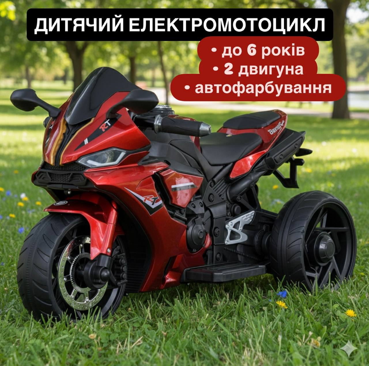 Дитячий триколісний електромотоцикл Yamaha R1 (MP3) з автофарбуванням, червоний