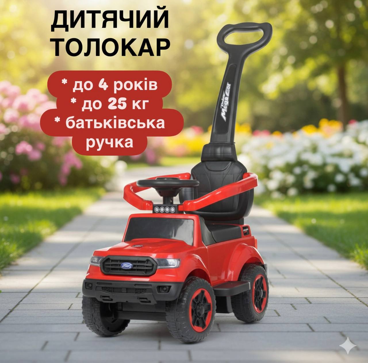Дитячий толокар-каталка Ford Super Car з батьківською ручкою