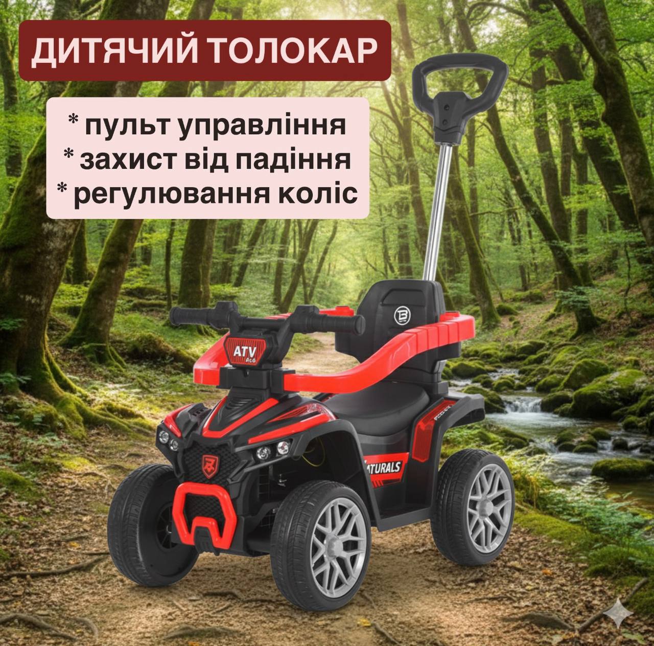 3 в 1: толокар + електромобіль + батьківська ручка