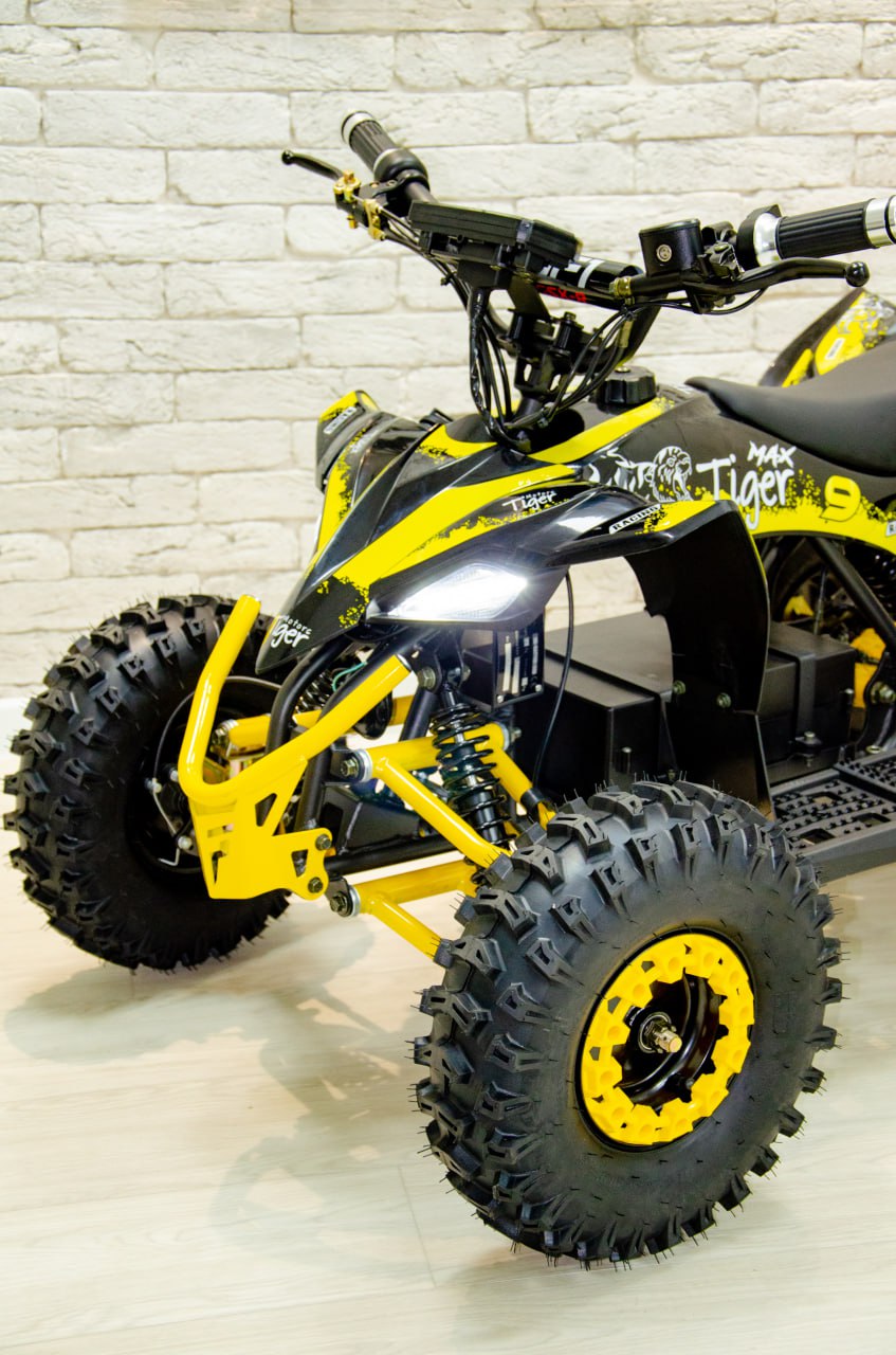 Полупрофессиональный электроквадроцикл для детей и подростков Bambi Profi 350W Tiger-9 с ручкой для транспортировки, до 65 кг, до 30 км/ч, желтый