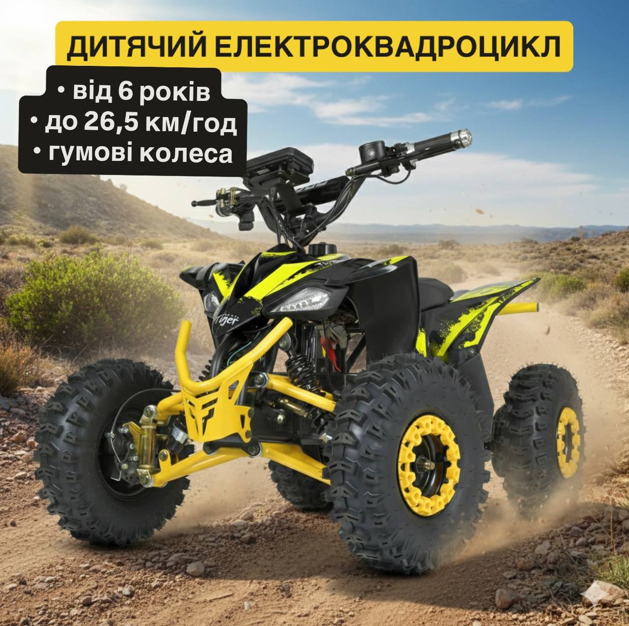 Напівпрофесійний електроквадроцикл для дітей та підлітків Profi 350W Tiger-9, жовтий